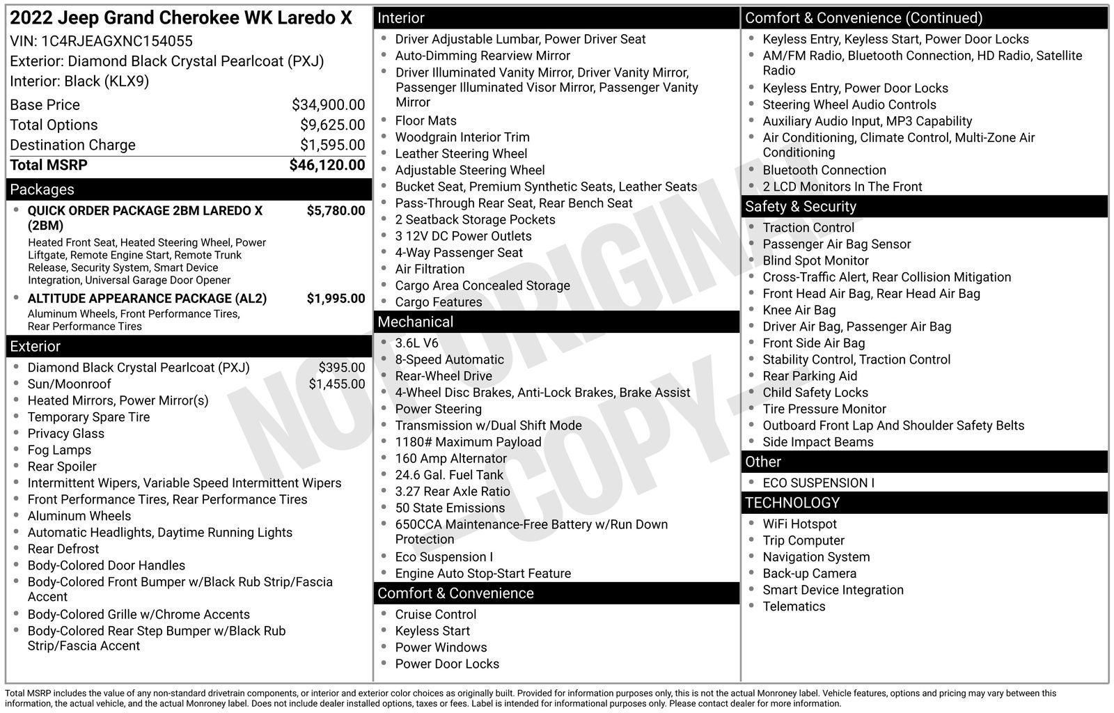115V Auxiliary Power Outlet, 6 Speakers, Air Conditioning, Altitude Appearance Package, Altitude Grille, AM/FM radio: SiriusXM, Apple CarPlay/Android Auto, Auto-dimming Rear-View mirror, Automatic temperature control, Black Suede Seats w/Black Stitching, Body Color Claddings, Body Color Fascia, Body Color Shark Fin Antenna, Brake assist, Bumpers: body-color, Cloth Bucket Seats, Dark Day Light Opening Moldings, Dark Headlamp Bezel Finish, Dark Lens Taillamps, Delay-off headlights, Delete Laredo Badge, Eco Suspension I, Electronic Stability Control, Front Accent/Body Color Fascia, Front Bucket Seats, Front Center Armrest w/Storage, Front dual zone A/C, Front fog lights, Fully automatic headlights, Gloss Black Jeep Badging, Gloss Black Rear Fascia Applique, Heated door mirrors, Heated Front Seats, Heated Steering Wheel, Illuminated entry, Leather Shift Knob, Navigation System, Panic alarm, ParkView Rear Back-Up Camera, Passenger door bin, Power door mirrors, Power driver seat, Power Liftgate, Power steering, Power Sunroof, Power windows, Quick Order Package 2BM Laredo X, Radio data system, Radio: Uconnect 4C Nav w/8.4 Display, Rear Accent/Body Color Fascia, Rear Fascia Black Molded in Color Step Pad, Rear window defroster, Rear window wiper, Remote keyless entry, Remote Start System, Security Alarm, Single Exhaust w/Bright Tip, Speed control, Speed-Sensitive Wipers, Split folding rear seat, Spoiler, Steering Wheel Mounted Audio Controls, Steering wheel mounted audio controls, Universal Garage Door Opener, Variably intermittent wipers, Wheels: 20 x 8.0 Gloss Black Aluminum. Priced below KBB Fair Purchase Price!