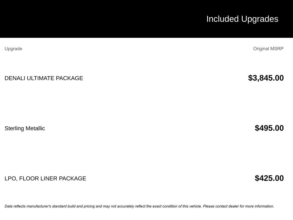 - GMC Pro Safety Plus includes (UHY) Automatic Emergency Braking, (UKJ) Front Pedestrian Braking, (TQ5) IntelliBeam headlamps, (UD5) Front and Rear Park Assist, (UHX) Lane Keep Assist with Lane Departure Warning, (UE4) Following Distance Indicator and (UEU) Forward Collision Alert; in addition to standard (UKC) Lane Change Alert with Side Blind Zone Alert and (UFG) Rear Cross Traffic Alert ((UHY) Automatic Emergency Braking is replaced with (UGN) Enhanced Automatic Emergency Braking when (PEC) Denali Ultimate Package or (CWM) Denali Technology Package are ordered. Beginning with start of production through July 24, 2022, certain vehicles will be forced to include (00Z) Not Equipped with Front and Rear Park Assist, which removes Front and Rear Park Assist. See dealer for details or the window label for the features on a specific vehicle.)