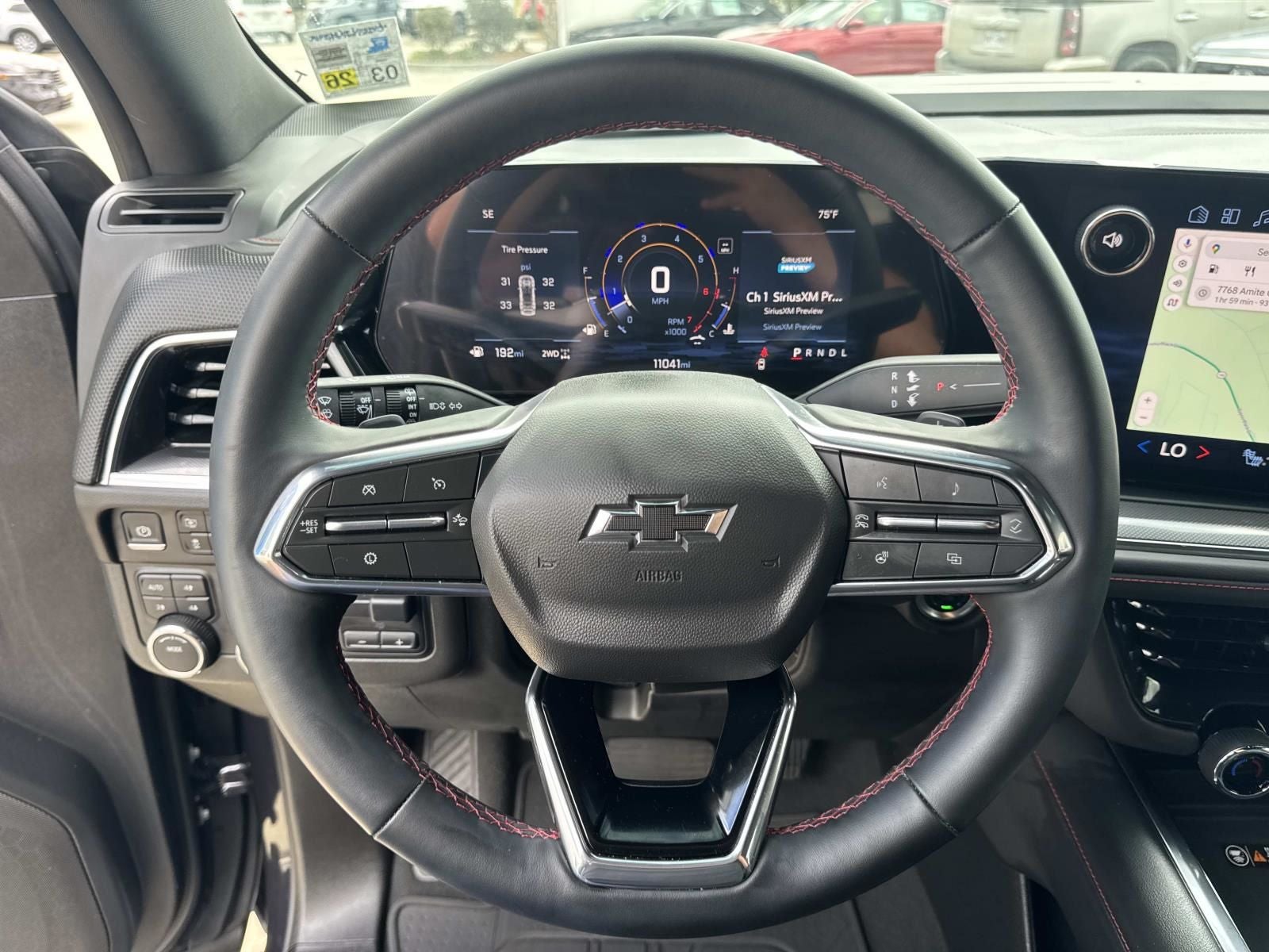 Recent Arrival! 4WD, Jet Black/Victory Red Leather, 2-Speed Active Electronic AutoTrac Transfer Case, 2-Way Power Driver Lumbar Seat Adjuster, 2-Way Power Front Passenger Lumbar Seat Adjuster, 3.23 Rear Axle Ratio, 3rd Row 60/40 Power-Folding Split-Bench Seat, 8-Way Power Driver Seat Adjuster, 8-Way Power Front Passenger Seat Adjuster, Active Cruise Control, Advanced Trailering Package, Alloy wheels, Apple CarPlay/Android Auto, Auto High-beam Headlights, Auto-Dimming Inside Rear-View Mirror, Automatic temperature control, Blind Zone Steering Assist with Trailering, Bose 10-Speaker Centerpoint Surround Audio System Feature, Brake assist, Bright Front and Rear Door Sill Plates, Dual Exhaust System, Dual-Pane Power Panoramic Sunroof, Emergency communication system: OnStar and Chevrolet connected services capable, Exterior Parking Camera Rear, Extra Capacity Cooling System, Front dual zone A/C, Front fog lights, Front LED Fog Lamps, Fully automatic headlights, Garage door transmitter, Heated Driver and Front Passenger Seats, Heated Steering Wheel, Hill Descent Control, Illuminated entry, LED Headlamps with LED Daytime Running Lamps, LED Tail Lamps, Low tire pressure warning, Memory seat, Memory Settings, Memory Settings For Driver, Navigation system: Google built-in compatibility (select service plan required, terms and limitations apply), Occupant sensing airbag, Outside Heated Power-Adjustable Mirrors, Perforated Leather Seat Trim, Power passenger seat, Power Release 2nd Row Bucket Seats, Premium audio system: Chevrolet Infotainment 3 Premium, Premium Smooth Ride Suspension, Radio: 17.7 Diagonal Advanced Color LCD Display, Rain sensing wipers, Rear air conditioning, Rear Power Liftgate, Rear window wiper, Remote keyless entry, Remote Start, RST Exterior Features, Set of 4 Wheel Locks, SiriusXM with 360L Trial Subscription, Spoiler, Steering wheel mounted audio controls, Universal Home Remote, Wheels: 22 x 9 Bright Machined, Wireless Phone Charging.