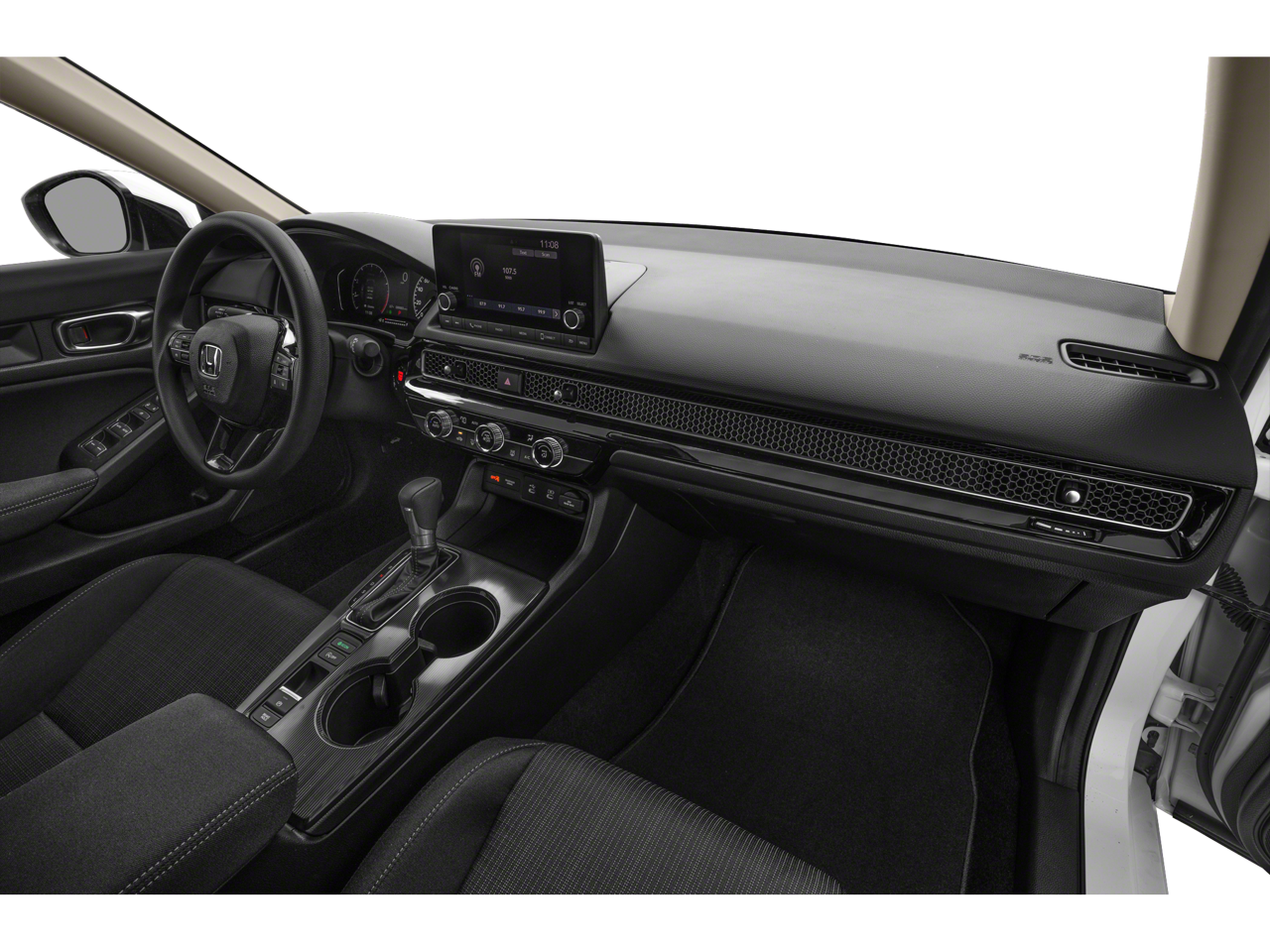 Recent Arrival! Black Cloth, Adaptive Cruise Control: Adaptive Cruise Control (ACC) with Low-Speed Follow, Apple CarPlay/Android Auto, Auto High-beam Headlights, Automatic temperature control, Brake assist, Cloth Seating Surfaces, Emergency communication system: HondaLink, Exterior Parking Camera Rear, Front Bucket Seats, Fully automatic headlights, Illuminated entry, Knee airbag, Low tire pressure warning, Occupant sensing airbag, Power door mirrors, Radio: 160-Watt Audio System, Remote keyless entry, Steering wheel mounted audio controls.